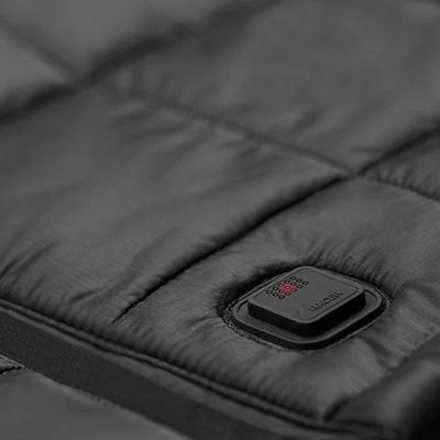 Comment fonctionne le système chauffant Racer ? La veste est livrée avec une batterie Power Bank qui se glisse facilement dans la poche de la veste grâce à son petit format compact – 13.5 cm sur 7 cm. Cette batterie propose plusieurs sorties, vous permettant de charger à la fois vos appareils électriques. La doudoune propose ainsi 3 niveaux de chauffe sur quatre zones : une zone de chauffe sur le bas du dos, à la nuque et deux sur le ventre.