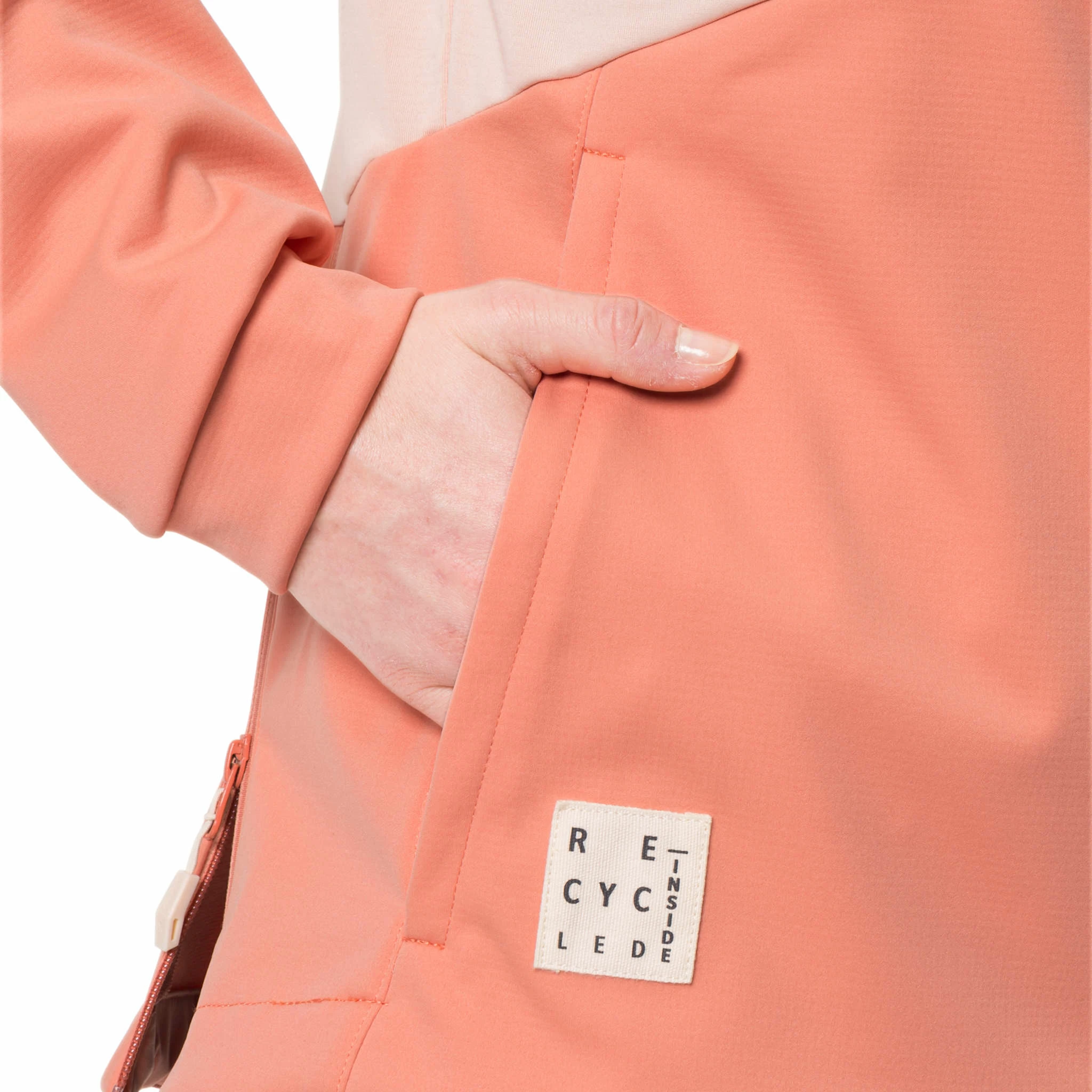 Au niveau du style, vous ne passerez pas inaperçue avec cette veste colourblock. Elle possède des empiècements rose saumon et rose pâle.